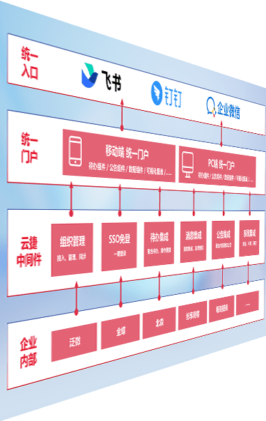 对协作平台提供支持服务,,,支持企业应用与协作平台对接,,,包含组织同步、、、、消息集成、、、、待办集成等。。。支持目前主流的协作平台:钉钉、、、、企微和飞书。。。
